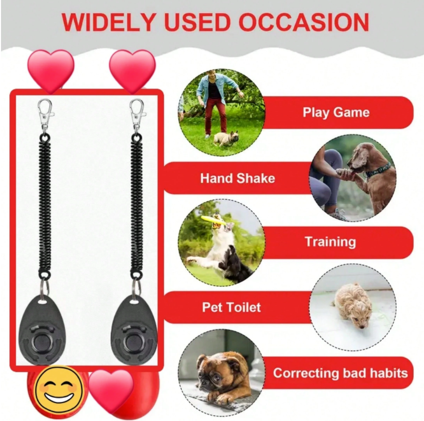 Train your dog easily with this professional 2-piece clicker set. Designed for effective communication and positive reinforcement, it helps improve obedience, focus, and overall behavior. Compact, lightweight, and easy to use—perfect for dog owners and professional trainers alike.