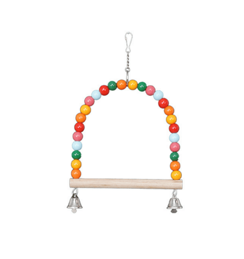 Colorful Hanging Bird Swing with Beads & Bells – Bird Toy for Cage (18x18cm)
