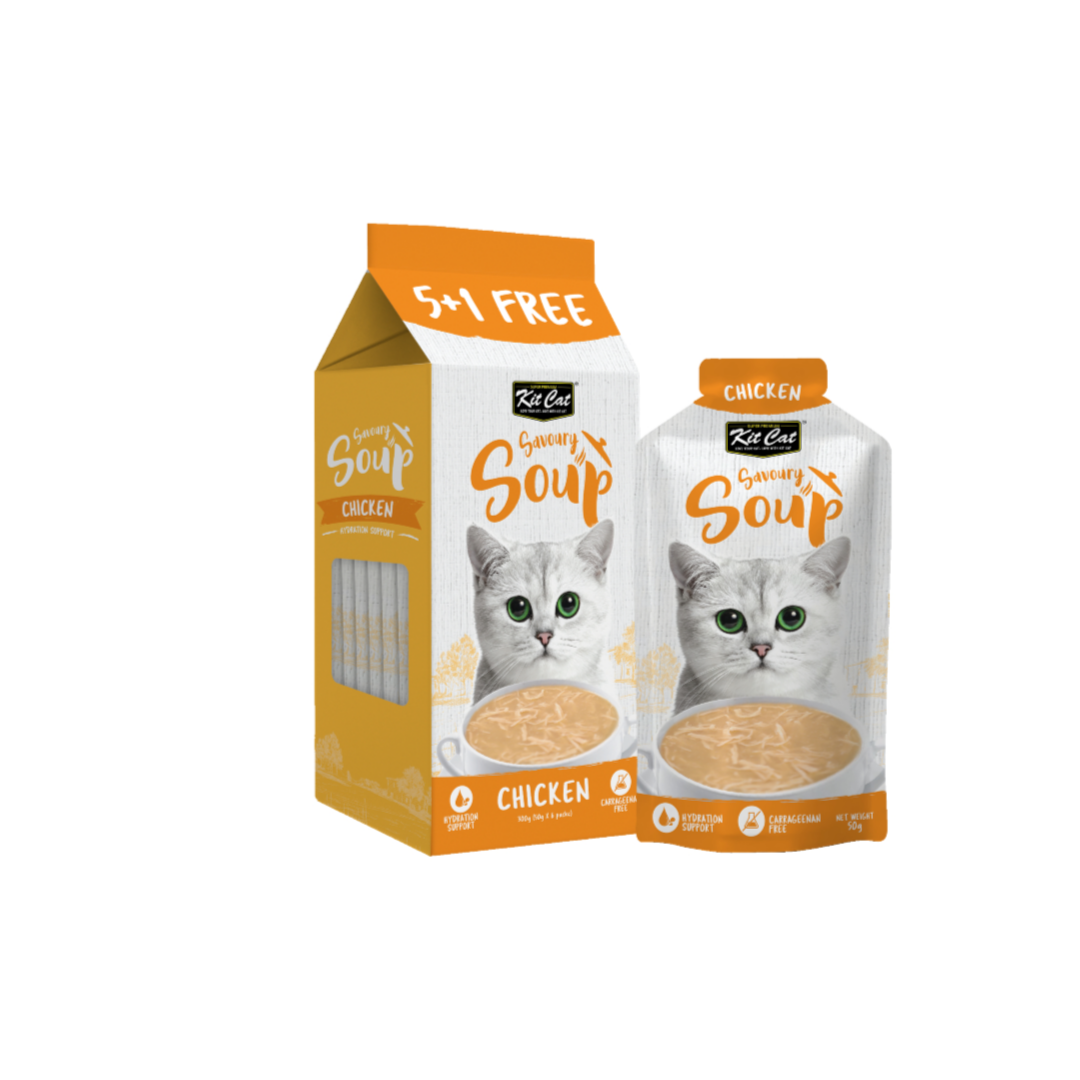 Kit Cat Savoury Soup Chicken Wet Cat Food is a tasty and nutritious wet food for cats, served in a flavorful broth. Each pack contains six individual 50 g portions, making it easy to serve the perfect amount for your cat while maintaining freshness. This recipe is enriched with essential nutrients to support your cat’s health and well-being.