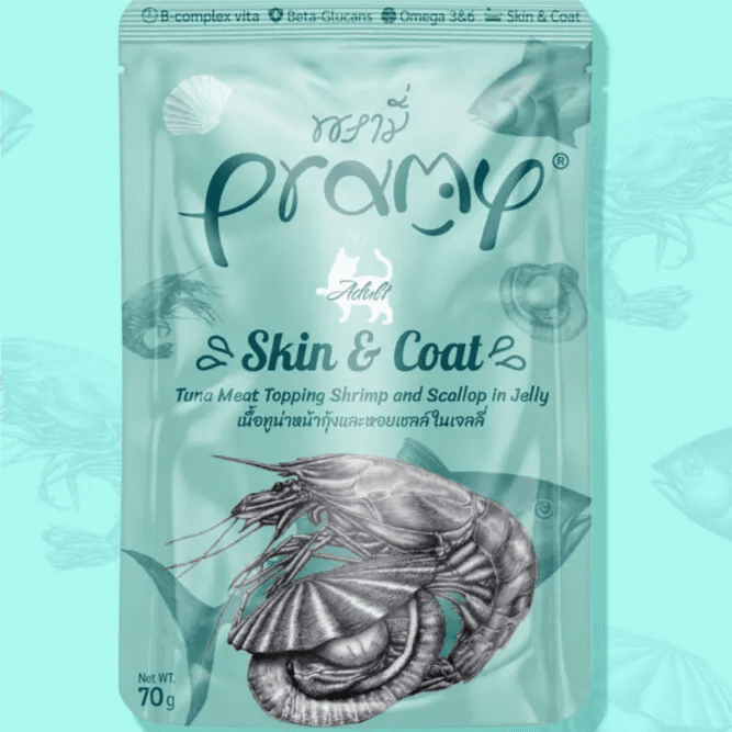 Pramy Adult Skin & Coat Tuna with Shrimp & Scallop in Jelly – 70g