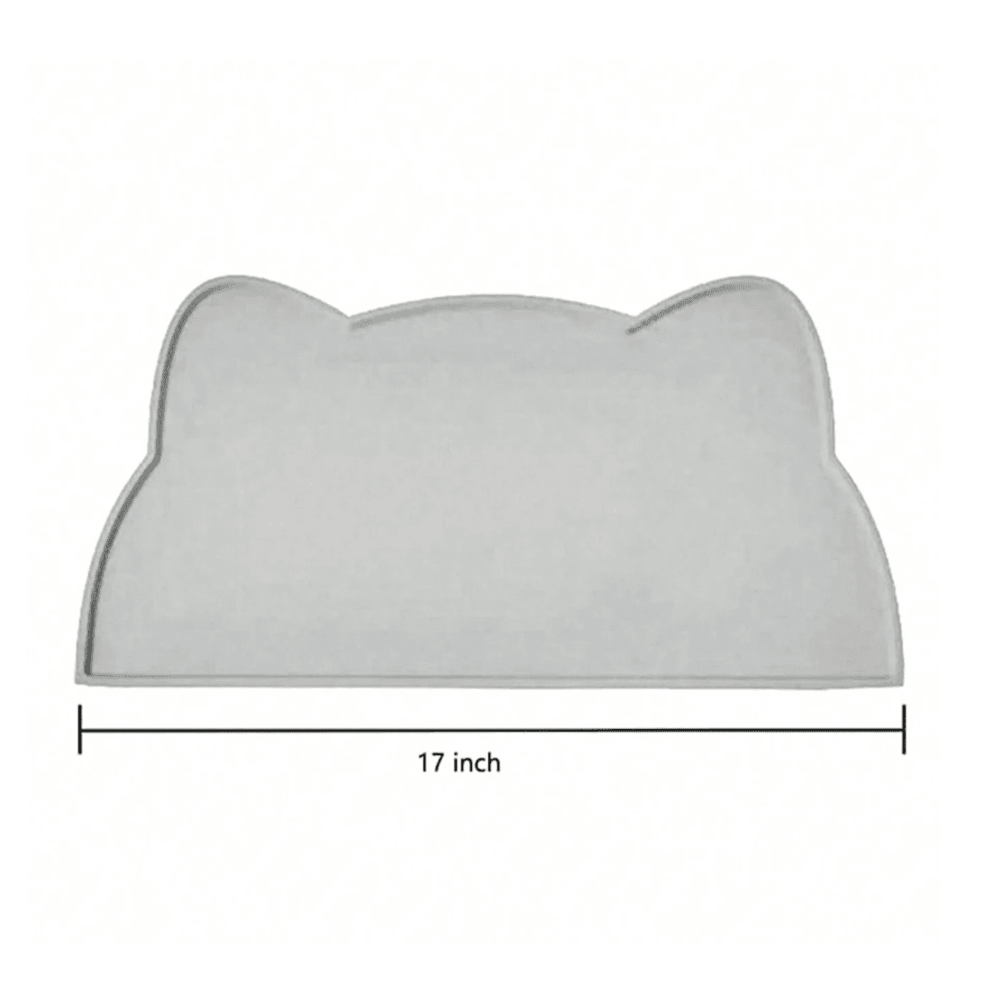 A durable and flexible silicone pet food mat that is waterproof, anti-slip, and leak-proof. Designed to keep feeding areas clean and tidy, it features raised edges to prevent spills and is easy to clean. Suitable for all pet sizes.